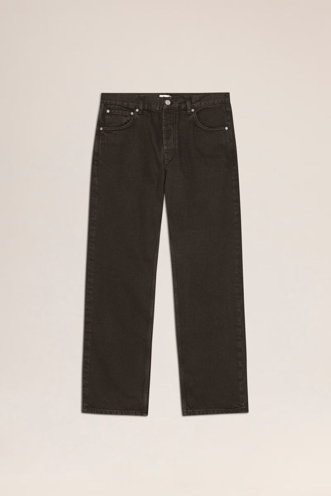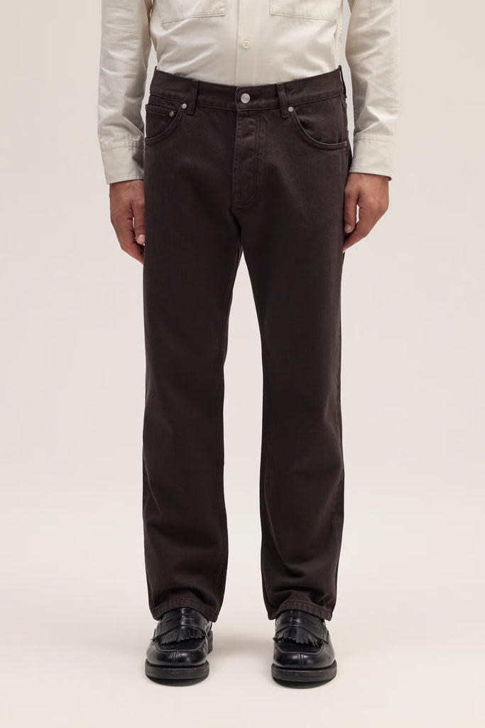 NN.07 dusky port brown straight-leg Sonny fit jeans, crafted from sturdy 13.50 oz midweight 100% organic cotton denim. Garment dyed, five-pocket styling, matte silver metal button closure with matching rivets, and finished with blue embroidery stitching along the back pocket.  Regular fit, straight leg and genuine leather logo patch at back