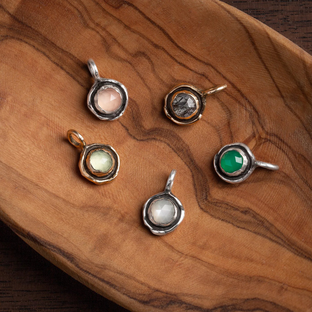 Bezel-set faceted stone talismans each have their own symbolic meaning designed to support you on your personal journey.