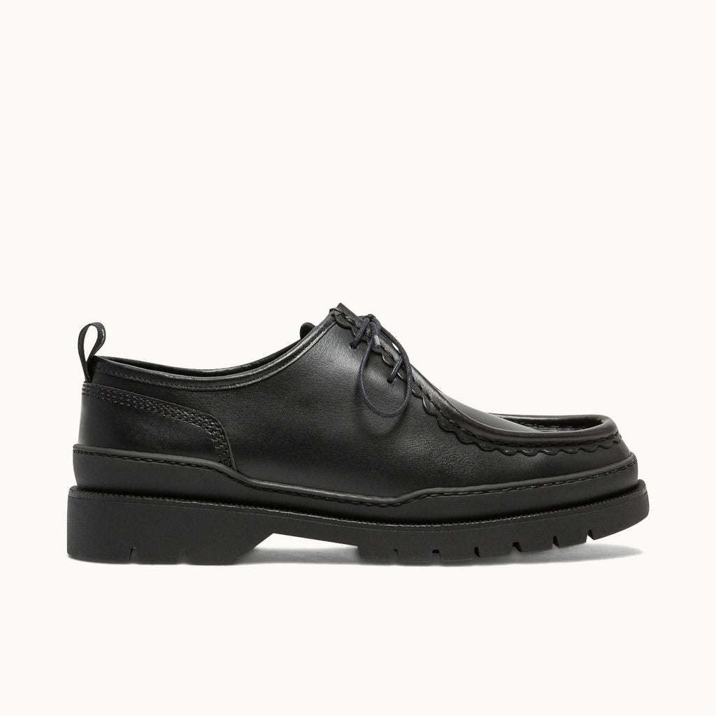 Version of the iconic KLEMAN shoe on a new natural rubber sole, discover the MAJOR black derby on a seamed top, with 2 eyelets.
