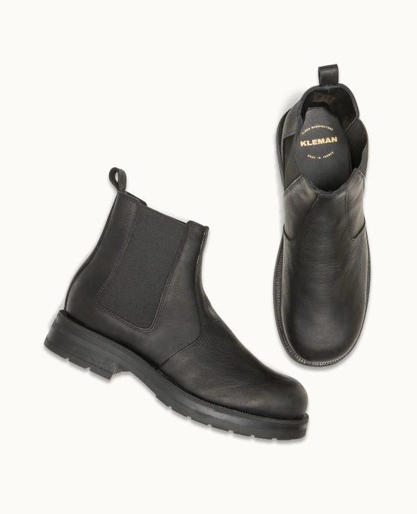 Kleman Black Noir Escouade NG Leather Boots. Black leather Chelsea boots with thick sole.
