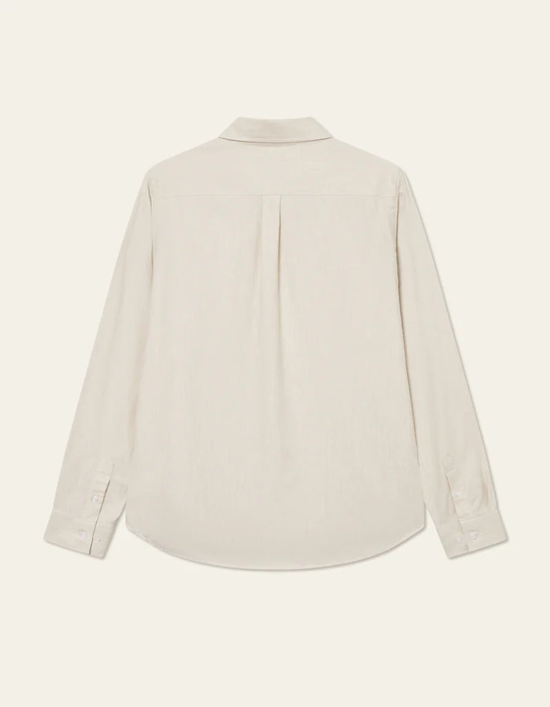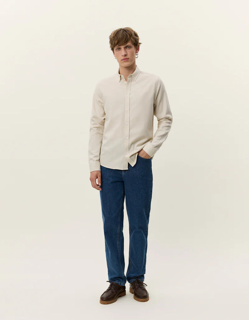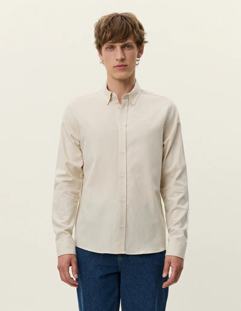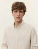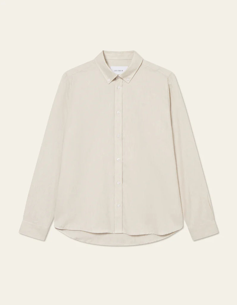 Les Deux ivory desert rag shirt is made of brushed 100% cotton it features a slim fit and a button down collar and contrast color buttons as well as a front placket, classic yoke with center box pleat and tonally matching embroidered Encore and a regular shoulder seam.