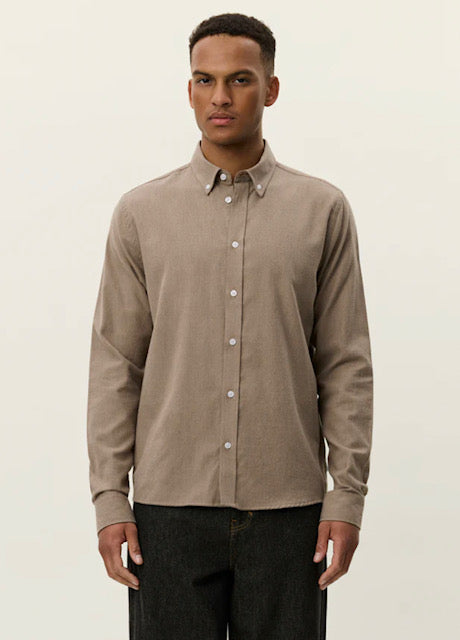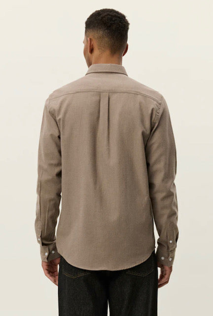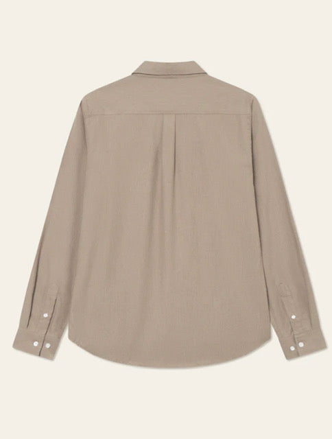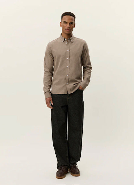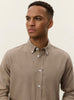 Les Deux lead grey desert rag Shirt is made of brushed 100% cotton it features a slim fit and a button down collar and contrast color buttons as well as a front placket, classic yoke with center box pleat and tonally matching embroidered Encore and a regular shoulder seam.