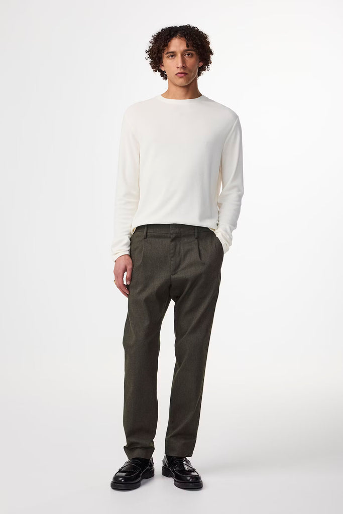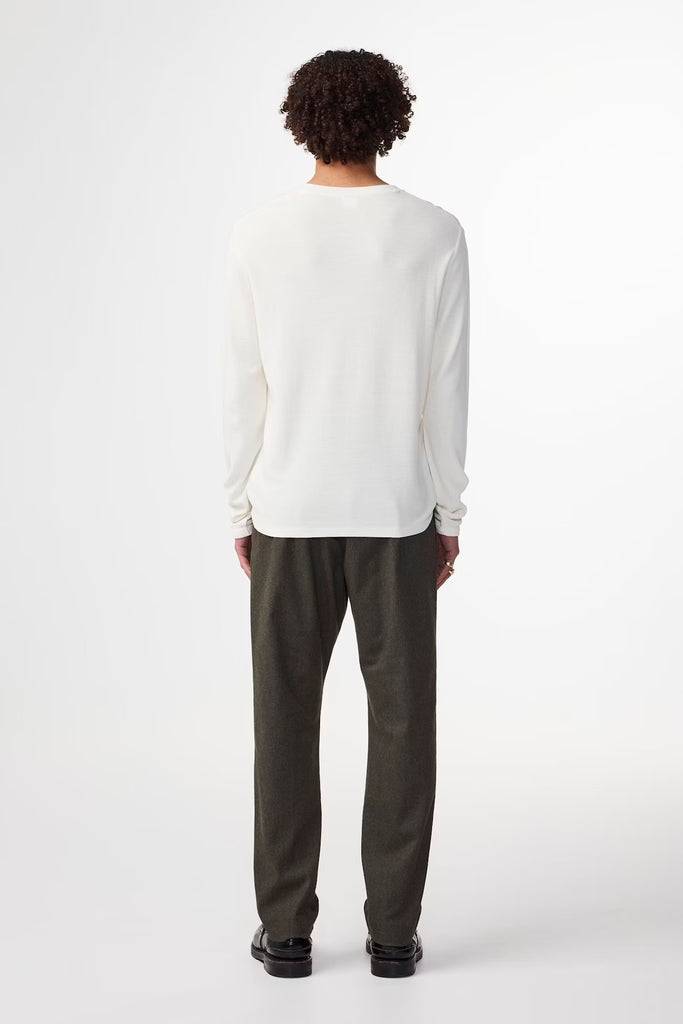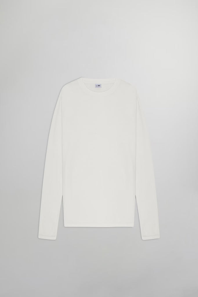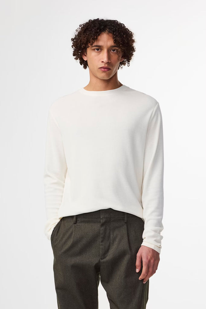 NN.07 egg white clive waffle knit long sleeve t shirt. This drapy classic tee made from a honeycomb structured 50% cotton and 50% TENCEL™ modal blend.