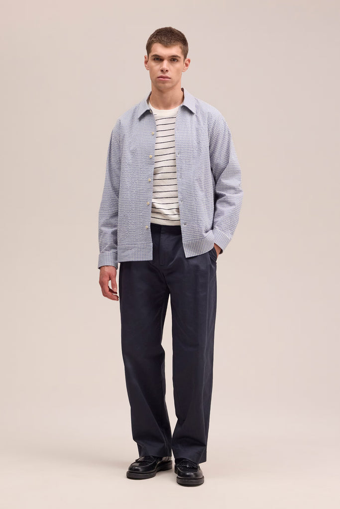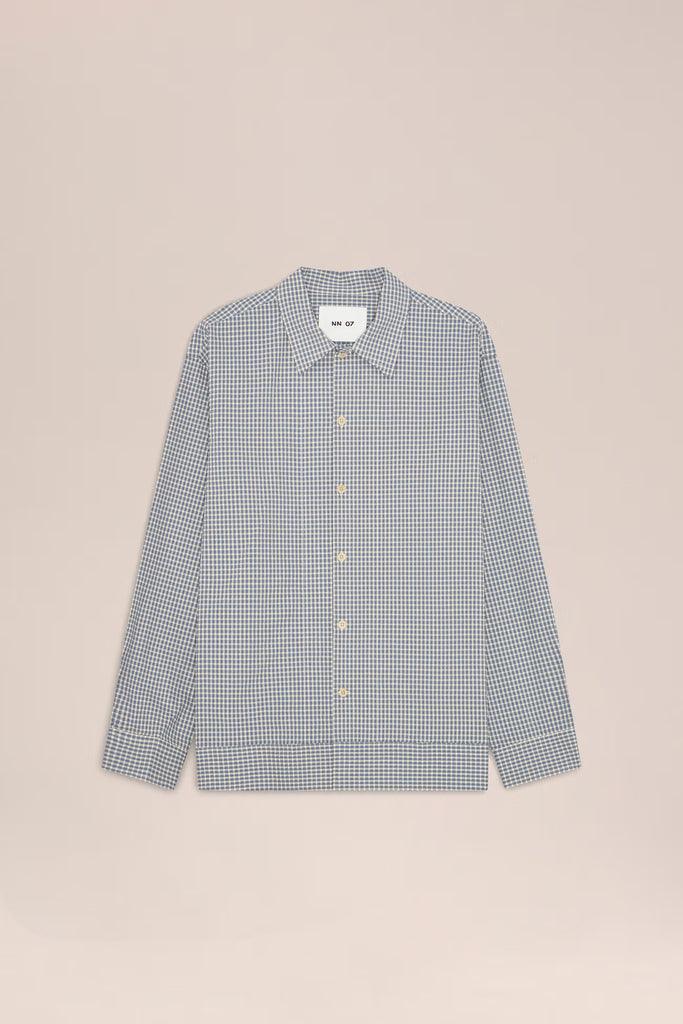 NN.07 Stone Blue Check Seersucker Reed Relaxed Fit Overshirt