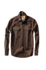 Relwen brown cotton moleskin button down workshirt. Two large-capacity flap pockets with reinforcing canvas from behind the openings for extra durability. Classic fit with a tapered waist. 97% cotton, 3% spandex moleskin fabric 328gsm. 100% cotton lining made from dark chamois melange flannel twill, 175gsm. Fly away 2.5" collar. Imported.