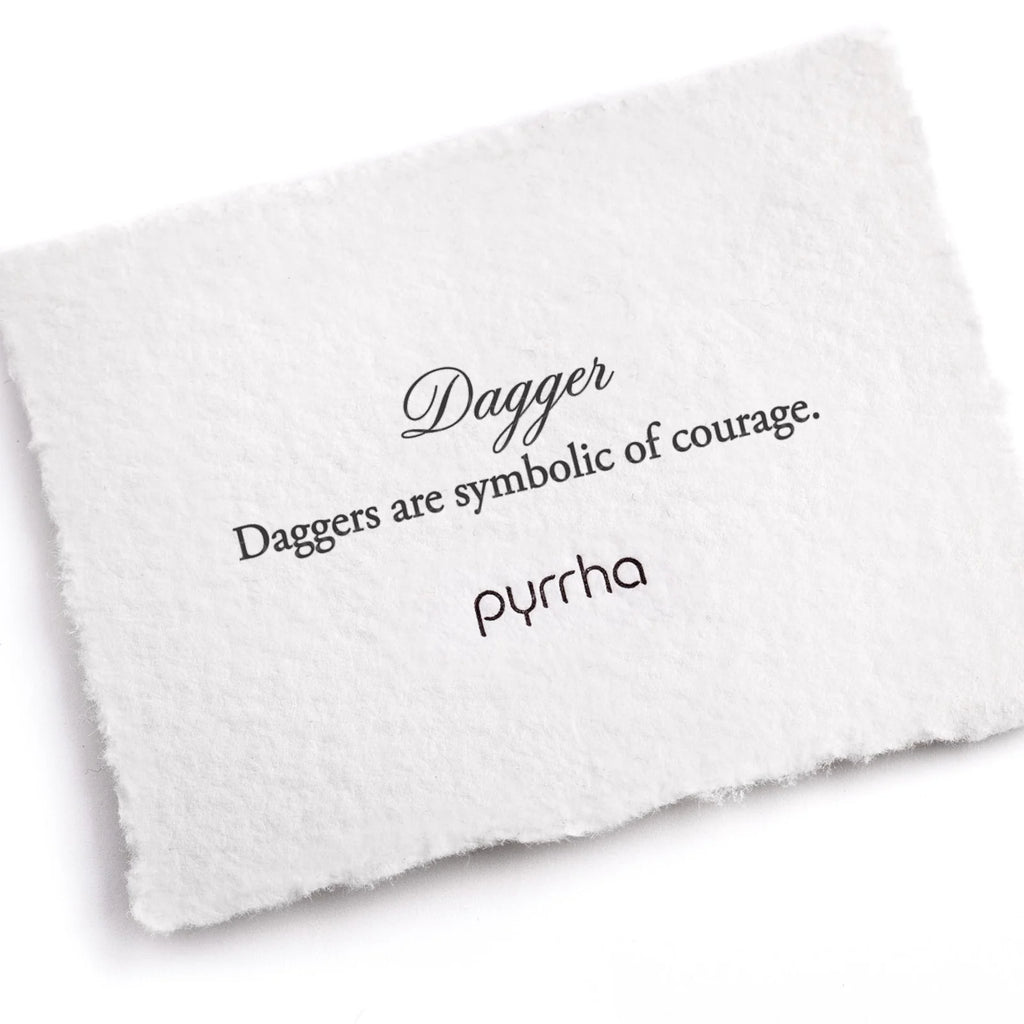 Pyrrha dagger sterling silver bead and tigers eye beaded bracelet. Hand-braided natural hemp bracelet features semi-precious beads and a cast sterling silver bead with a meaningful symbol engraved on two sides tag. Tiger’s Eye inspires strength and courage. Made in Canada.
