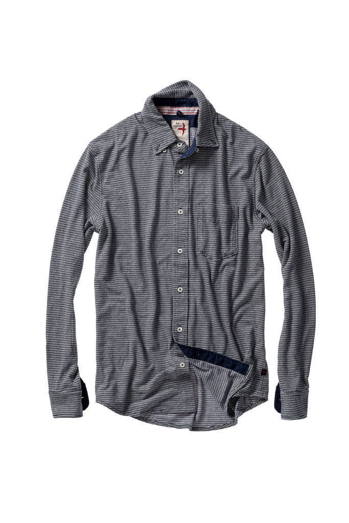 Relwen Midnight Blue Hemp Cotton Stripe Jersey Shirt
