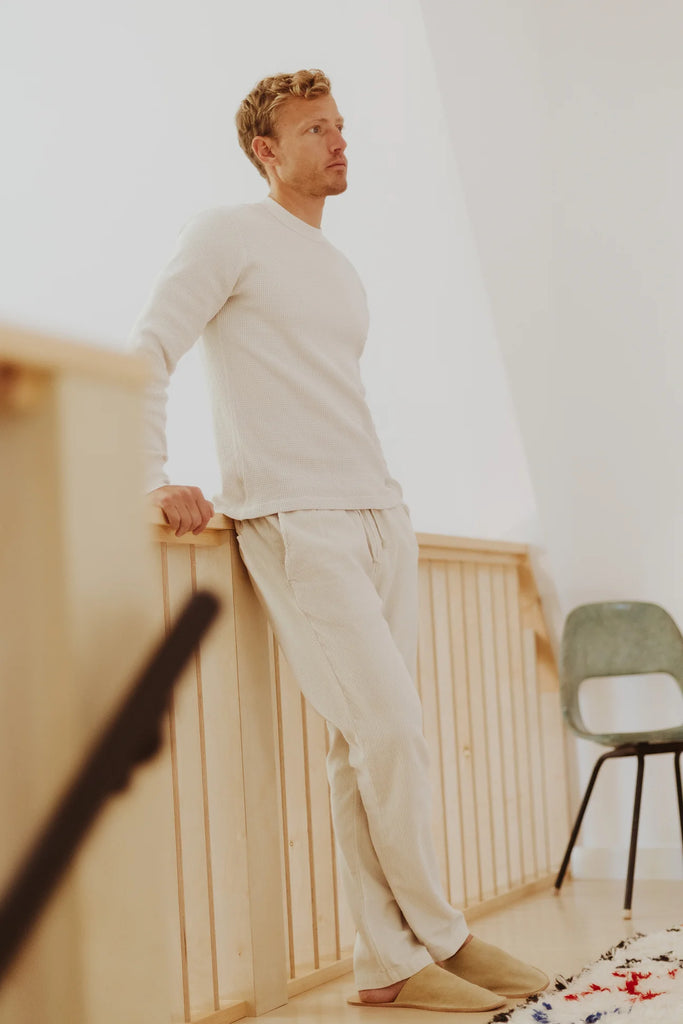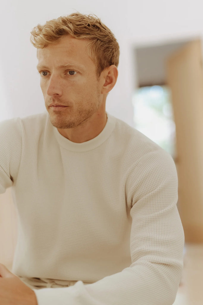 Modeled after the timeless thermal, our long sleeve waffle crew is crafted from a mid-weight textural waffle quality, striking the perfect balance between breathability and coziness.