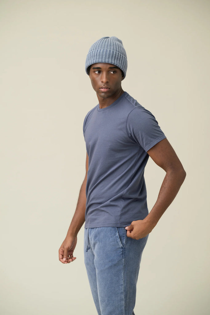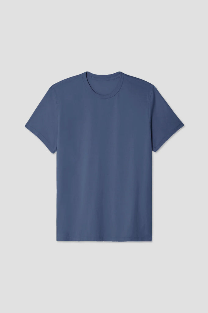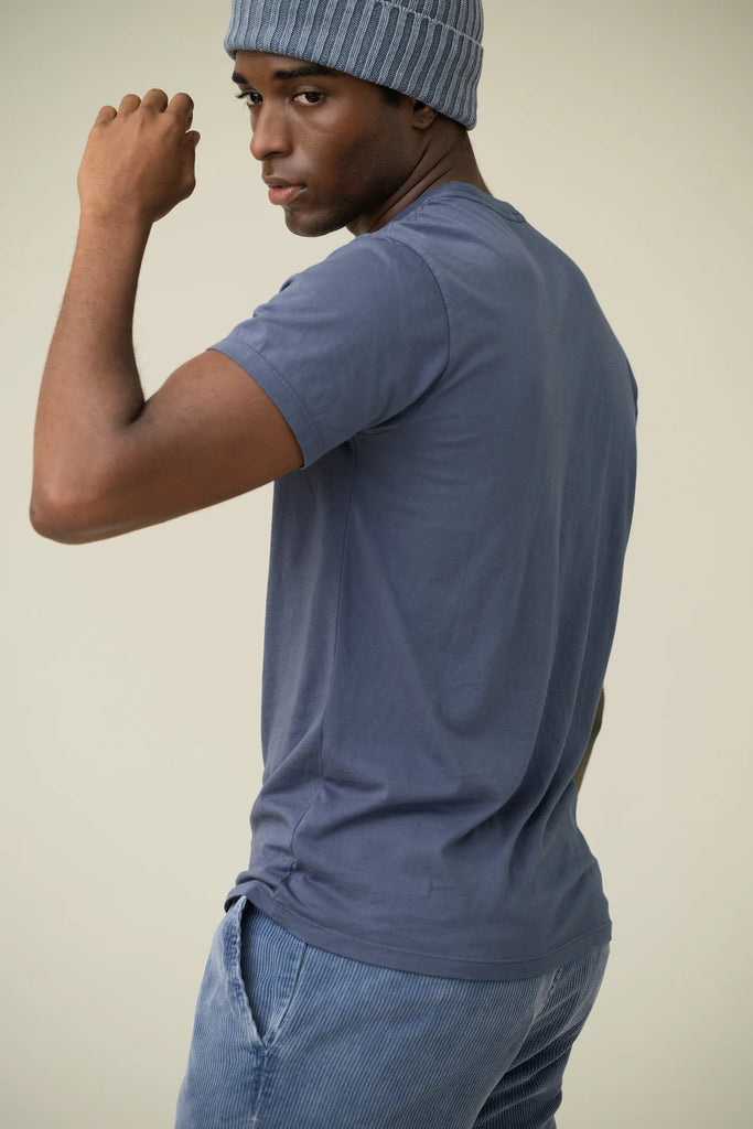 Save Khaki's indigo blue supima cotton jersey fitted t shirt. 100% Supima cotton, grown in America. Garment-dyed & pre-shrunk.