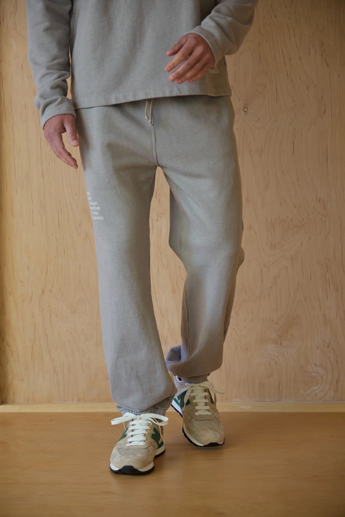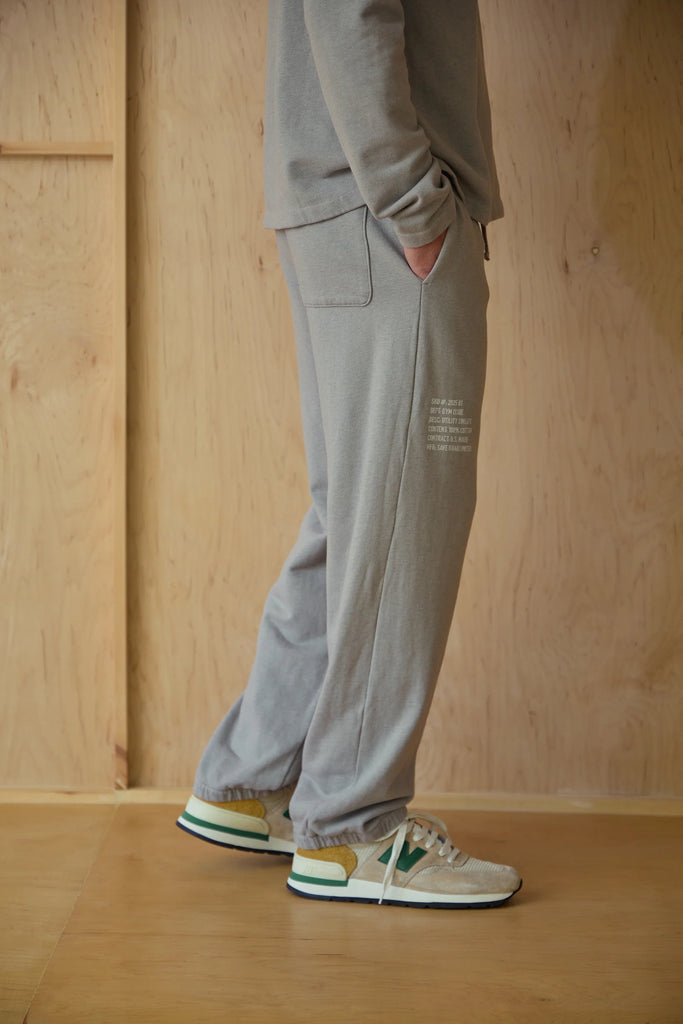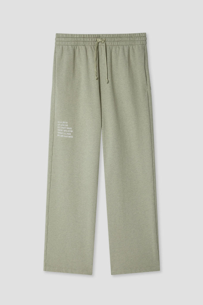 Save Khaki pistachio green heather 100% cotton straight leg sweatpants. Elastic waistband with drawstring, side pockets and back pocket. This sweatpant combines texture and comfort with a wider leg and straight cut.