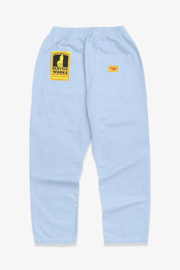 - {"id":7803707064382,"title":"Service Works Powder Blue Poplin Chef Pants","handle":"service-works-powder-blue-poplin-chef-pants","description":"\u003cp\u003eService Works Powder Blue 11oz \u003cmeta charset=\"utf-8\"\u003e\u003cspan\u003eGOTS™ 100% 220 GSM Lightweight Poplin\u003c\/span\u003e organic cotton Chef style pants. \u003cspan\u003eRelaxed fit, straight leg, adjustable waistband with drawstring, fatigue front pockets and rear pockets with woven label.\u003c\/span\u003e\u003c\/p\u003e\n\u003cp\u003e\u003cspan\u003eThese Chef pants fit a large range of sizes due to the elasticated waist, our intended fit is relaxed. For a slimmer fit, size down or for a baggier fit, size up\u003c\/span\u003e\u003c\/p\u003e\n\u003cp\u003e\u003cspan\u003eSmall 28\"-31\" waist, 38.5\" outside leg, 27.5\" in-seam\u003cbr\u003eMedium 31\"-33\" waist, 38.5\" outside leg, 27.5\" in-seam\u003cbr\u003eLarge 23\"-35\" waist, 38.5\" outside leg, 27.5\" in-seam\u003cbr\u003eX-Large 35\"-37\" waist, 38.5\" outside leg, 27.5\" in-seam\u003c\/span\u003e\u003cspan\u003e\u003c\/span\u003e\u003cspan\u003e\u003c\/span\u003e\u003c\/p\u003e\n\u003cp\u003eCARE\u003cbr\u003eMachine Wash\u003cbr\u003e\u003cbr\u003eBRAND\u003cbr\u003eService Works is based in London, England. \u003cbr\u003e\u003cspan style=\"font-family: -apple-system, BlinkMacSystemFont, 'San Francisco', 'Segoe UI', Roboto, 'Helvetica Neue', sans-serif; font-size: 0.875rem;\"\u003eFounder grew up family-run hospitality business, my first jobs were in the kitchen; cleaning, prepping and eventually cooking. Service Works is a homage to this.\u003c\/span\u003e\u003c\/p\u003e","published_at":"2025-05-30T15:10:38-07:00","created_at":"2025-05-30T15:10:00-07:00","vendor":"Service Works","type":"Pants","tags":["New"],"price":7400,"price_min":7400,"price_max":7400,"available":true,"price_varies":false,"compare_at_price":9900,"compare_at_price_min":9900,"compare_at_price_max":9900,"compare_at_price_varies":false,"variants":[{"id":41778394005566,"title":"X-Small \/ Powder Blue","option1":"X-Small","option2":"Powder Blue","option3":null,"sku":"SW-SS25-SW139-PWDR-XS","requires_shipping":true,"taxable":true,"featured_image":null,"available":false,"name":"Service Works Powder Blue Poplin Chef Pants - X-Small \/ Powder Blue","public_title":"X-Small \/ Powder Blue","options":["X-Small","Powder Blue"],"price":7400,"weight":454,"compare_at_price":9900,"inventory_quantity":0,"inventory_management":"shopify","inventory_policy":"deny","barcode":"","requires_selling_plan":false,"selling_plan_allocations":[]},{"id":41778394038334,"title":"Small \/ Powder Blue","option1":"Small","option2":"Powder Blue","option3":null,"sku":"SW-SS25-SW139-PWDR-S","requires_shipping":true,"taxable":true,"featured_image":null,"available":false,"name":"Service Works Powder Blue Poplin Chef Pants - Small \/ Powder Blue","public_title":"Small \/ Powder Blue","options":["Small","Powder Blue"],"price":7400,"weight":454,"compare_at_price":9900,"inventory_quantity":0,"inventory_management":"shopify","inventory_policy":"deny","barcode":"","requires_selling_plan":false,"selling_plan_allocations":[]},{"id":41778394071102,"title":"Medium \/ Powder Blue","option1":"Medium","option2":"Powder Blue","option3":null,"sku":"SW-SS25-SW139-PWDR-M","requires_shipping":true,"taxable":true,"featured_image":null,"available":true,"name":"Service Works Powder Blue Poplin Chef Pants - Medium \/ Powder Blue","public_title":"Medium \/ Powder Blue","options":["Medium","Powder Blue"],"price":7400,"weight":454,"compare_at_price":9900,"inventory_quantity":7,"inventory_management":"shopify","inventory_policy":"deny","barcode":"","requires_selling_plan":false,"selling_plan_allocations":[]},{"id":41778394103870,"title":"Large \/ Powder Blue","option1":"Large","option2":"Powder Blue","option3":null,"sku":"SW-SS25-SW139-PWDR-L","requires_shipping":true,"taxable":true,"featured_image":null,"available":true,"name":"Service Works Powder Blue Poplin Chef Pants - Large \/ Powder Blue","public_title":"Large \/ Powder Blue","options":["Large","Powder Blue"],"price":7400,"weight":454,"compare_at_price":9900,"inventory_quantity":1,"inventory_management":"shopify","inventory_policy":"deny","barcode":"","requires_selling_plan":false,"selling_plan_allocations":[]},{"id":41778394136638,"title":"X-Large \/ Powder Blue","option1":"X-Large","option2":"Powder Blue","option3":null,"sku":"SW-SS25-SW139-PWDR-XL","requires_shipping":true,"taxable":true,"featured_image":null,"available":false,"name":"Service Works Powder Blue Poplin Chef Pants - X-Large \/ Powder Blue","public_title":"X-Large \/ Powder Blue","options":["X-Large","Powder Blue"],"price":7400,"weight":454,"compare_at_price":9900,"inventory_quantity":0,"inventory_management":"shopify","inventory_policy":"deny","barcode":"","requires_selling_plan":false,"selling_plan_allocations":[]}],"images":["\/\/wittmore.com\/cdn\/shop\/files\/ChefPants-Poplin-Powder.jpg?v=1748643022","\/\/wittmore.com\/cdn\/shop\/files\/IMG_1570.jpg?v=1748739121","\/\/wittmore.com\/cdn\/shop\/files\/IMG_1571.jpg?v=1748739130","\/\/wittmore.com\/cdn\/shop\/files\/IMG_1572.jpg?v=1748739138","\/\/wittmore.com\/cdn\/shop\/files\/IMG_1574.jpg?v=1748739148","\/\/wittmore.com\/cdn\/shop\/files\/IMG_1575.jpg?v=1748739158"],"featured_image":"\/\/wittmore.com\/cdn\/shop\/files\/ChefPants-Poplin-Powder.jpg?v=1748643022","options":["Size","Color"],"media":[{"alt":null,"id":25948074770494,"position":1,"preview_image":{"aspect_ratio":0.667,"height":1800,"width":1200,"src":"\/\/wittmore.com\/cdn\/shop\/files\/ChefPants-Poplin-Powder.jpg?v=1748643022"},"aspect_ratio":0.667,"height":1800,"media_type":"image","src":"\/\/wittmore.com\/cdn\/shop\/files\/ChefPants-Poplin-Powder.jpg?v=1748643022","width":1200},{"alt":null,"id":25952035930174,"position":2,"preview_image":{"aspect_ratio":0.573,"height":640,"width":367,"src":"\/\/wittmore.com\/cdn\/shop\/files\/IMG_1570.jpg?v=1748739121"},"aspect_ratio":0.573,"height":640,"media_type":"image","