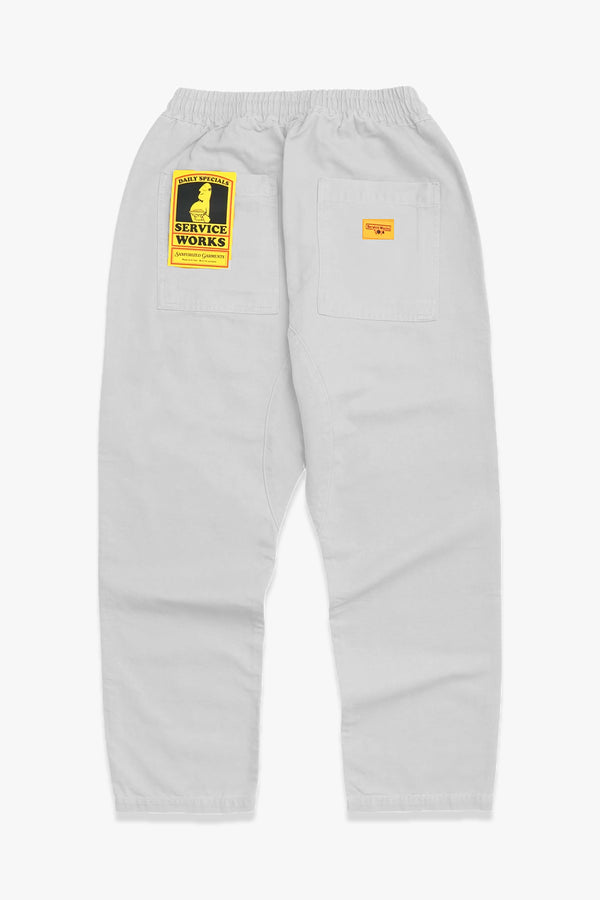 - {"id":7403922423870,"title":"Service Works Stone Grey Canvas Chef Pants","handle":"service-works-stone-grey-canvas-chef-pants","description":"\u003cp\u003eService Works stone grey 11oz 360gsm organic cotton canvas Chef style pants. \u003cspan\u003eRelaxed fit, straight leg, adjustable waistband with drawstring, fatigue front pockets and rear pockets with woven label.\u003c\/span\u003e\u003c\/p\u003e\n\u003cp\u003e\u003cspan\u003eThese Chef pants fit a large range of sizes due to the elasticated waist, our intended fit is relaxed. For a slimmer fit, size down or for a baggier fit, size up\u003c\/span\u003e\u003c\/p\u003e\n\u003cp\u003e\u003cspan\u003eSmall 28\"-31\" waist, 38.5\" outside leg, 27.5\" in-seam\u003cbr\u003eMedium 31\"-33\" waist, 38.5\" outside leg, 27.5\" in-seam\u003cbr\u003eLarge 23\"-35\" waist, 38.5\" outside leg, 27.5\" in-seam\u003cbr\u003eX-Large 35\"-37\" waist, 38.5\" outside leg, 27.5\" in-seam\u003c\/span\u003e\u003cspan\u003e\u003c\/span\u003e\u003cspan\u003e\u003c\/span\u003e\u003c\/p\u003e\n\u003cp\u003eCARE\u003cbr\u003eMachine Wash\u003cbr\u003e\u003cbr\u003eBRAND\u003cbr\u003eService Works is based in London, England. \u003cbr\u003e\u003cspan style=\"font-family: -apple-system, BlinkMacSystemFont, 'San Francisco', 'Segoe UI', Roboto, 'Helvetica Neue', sans-serif; font-size: 0.875rem;\"\u003eFounder grew up family-run hospitality business, my first jobs were in the kitchen; cleaning, prepping and eventually cooking. Service Works is a homage to this.\u003c\/span\u003e\u003c\/p\u003e","published_at":"2025-05-30T14:21:06-07:00","created_at":"2024-03-19T16:03:06-07:00","vendor":"Service Works","type":"Pants","tags":["Evergreen","New"],"price":9900,"price_min":9900,"price_max":9900,"available":true,"price_varies":false,"compare_at_price":null,"compare_at_price_min":0,"compare_at_price_max":0,"compare_at_price_varies":false,"variants":[{"id":40630936731710,"title":"X-Small \/ Stone Grey","option1":"X-Small","option2":"Stone Grey","option3":null,"sku":"SW-SS24-1002_Stone_XS","requires_shipping":true,"taxable":true,"featured_image":null,"available":true,"name":"Service Works Stone Grey Canvas Chef Pants - X-Small \/ Stone Grey","public_title":"X-Small \/ Stone Grey","options":["X-Small","Stone Grey"],"price":9900,"weight":454,"compare_at_price":null,"inventory_quantity":2,"inventory_management":"shopify","inventory_policy":"deny","barcode":"","requires_selling_plan":false,"selling_plan_allocations":[]},{"id":40630936764478,"title":"Small \/ Stone Grey","option1":"Small","option2":"Stone Grey","option3":null,"sku":"SW-SS24-1002_Stone_S","requires_shipping":true,"taxable":true,"featured_image":null,"available":false,"name":"Service Works Stone Grey Canvas Chef Pants - Small \/ Stone Grey","public_title":"Small \/ Stone Grey","options":["Small","Stone Grey"],"price":9900,"weight":454,"compare_at_price":null,"inventory_quantity":0,"inventory_management":"shopify","inventory_policy":"deny","barcode":"","requires_selling_plan":false,"selling_plan_allocations":[]},{"id":40630936797246,"title":"Medium \/ Stone Grey","option1":"Medium","option2":"Stone Grey","option3":null,"sku":"SW-SS24-1002_Stone_M","requires_shipping":true,"taxable":true,"featured_image":null,"available":false,"name":"Service Works Stone Grey Canvas Chef Pants - Medium \/ Stone Grey","public_title":"Medium \/ Stone Grey","options":["Medium","Stone Grey"],"price":9900,"weight":454,"compare_at_price":null,"inventory_quantity":-1,"inventory_management":"shopify","inventory_policy":"deny","barcode":"","requires_selling_plan":false,"selling_plan_allocations":[]},{"id":40630936830014,"title":"Large \/ Stone Grey","option1":"Large","option2":"Stone Grey","option3":null,"sku":"SW-SS24-1002_Stone_L","requires_shipping":true,"taxable":true,"featured_image":null,"available":true,"name":"Service Works Stone Grey Canvas Chef Pants - Large \/ Stone Grey","public_title":"Large \/ Stone Grey","options":["Large","Stone Grey"],"price":9900,"weight":454,"compare_at_price":null,"inventory_quantity":2,"inventory_management":"shopify","inventory_policy":"deny","barcode":"","requires_selling_plan":false,"selling_plan_allocations":[]},{"id":40630936862782,"title":"X-Large \/ Stone Grey","option1":"X-Large","option2":"Stone Grey","option3":null,"sku":"SW-SS24-1002_Stone_XL","requires_shipping":true,"taxable":true,"featured_image":null,"available":true,"name":"Service Works Stone Grey Canvas Chef Pants - X-Large \/ Stone Grey","public_title":"X-Large \/ Stone Grey","options":["X-Large","Stone Grey"],"price":9900,"weight":454,"compare_at_price":null,"inventory_quantity":1,"inventory_management":"shopify","inventory_policy":"deny","barcode":"","requires_selling_plan":false,"selling_plan_allocations":[]},{"id":41795881271358,"title":"XX-Large \/ Stone Grey","option1":"XX-Large","option2":"Stone Grey","option3":null,"sku":null,"requires_shipping":true,"taxable":true,"featured_image":null,"available":true,"name":"Service Works Stone Grey Canvas Chef Pants - XX-Large \/ Stone Grey","public_title":"XX-Large \/ Stone Grey","options":["XX-Large","Stone Grey"],"price":9900,"weight":454,"compare_at_price":null,"inventory_quantity":2,"inventory_management":"shopify","inventory_policy":"deny","barcode":"","requires_selling_plan":false,"selling_plan_allocations":[]}],"images":["\/\/wittmore.com\/cdn\/shop\/files\/chefpants-abbeystone-1_1800x1800_08243671-b1c7-4553-945a-fd721637f40f.webp?v=1710956712","\/\/wittmore.com\/cdn\/shop\/files\/chefpants-abbeystone-2_1800x1800_b62edc0f-be17-4d51-9444-aa1690417109.webp?v=1710956712","\/\/wittmore.com\/cdn\/shop\/files\/chefpants-abbeystone-3_1800x1800_ee2afa37-6059-4db2-83a7-8c21ffaceeb4.jpg?v=1710956712","\/\/wittmore.com\/cdn\/shop\/files\/chefpants-abbeystone-4_1800x1800_764e35fe-0fd9-4db0-9ca6-013f221123bc.jpg?v=1710956713"],"featured_image":"\/\/wittmore.com\/cdn\/shop\/files\/chefpants-abbeystone-1_1800x1800_08243671-b1c7-4553-945a-fd721637f40f.webp?v=1710956712","options":["Size","Color"],"med