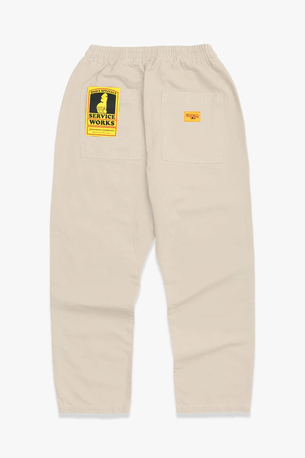 - {"id":7857898160190,"title":"Service Works Pale Khaki Canvas Chef Pants","handle":"service-works-pale-khaki-canvas-chef-pants","description":"\u003cp\u003eService Works pale khaki 11oz 360gsm organic cotton canvas Chef style pants. \u003cspan\u003eRelaxed fit, straight leg, adjustable waistband with drawstring, fatigue front pockets and rear pockets with woven label.\u003c\/span\u003e\u003c\/p\u003e\n\u003cp\u003e\u003cspan\u003eThese Chef pants fit a large range of sizes due to the elasticated waist, our intended fit is relaxed. For a slimmer fit, size down or for a baggier fit, size up\u003c\/span\u003e\u003c\/p\u003e\n\u003cp\u003e\u003cmeta charset=\"utf-8\"\u003e\u003cspan\u003eSmall 28\"-30\" waist, 40.5\" outside leg, 28\" in-seam\u003cbr\u003eMedium 30\"-32\" waist, 41\" outside leg, 28.75\" in-seam\u003cbr\u003eLarge 32\"-34\" waist, 41.5\" outside leg, 29.3\" in-seam\u003cbr\u003eX-Large 34\"-36\" waist, 42\" outside leg, 29.9\" in-seam\u003c\/span\u003e\u003c\/p\u003e\n\u003cp\u003eCARE\u003cbr\u003eMachine Wash\u003cbr\u003e\u003cbr\u003eBRAND\u003cbr\u003eService Works is based in London, England. \u003cbr\u003e\u003cspan style=\"font-family: -apple-system, BlinkMacSystemFont, 'San Francisco', 'Segoe UI', Roboto, 'Helvetica Neue', sans-serif; font-size: 0.875rem;\"\u003eFounder grew up family-run hospitality business, my first jobs were in the kitchen; cleaning, prepping and eventually cooking. Service Works is a homage to this.\u003c\/span\u003e\u003c\/p\u003e","published_at":"2025-09-13T11:34:34-07:00","created_at":"2025-09-04T09:45:26-07:00","vendor":"Service Works","type":"Pants","tags":["New"],"price":9900,"price_min":9900,"price_max":9900,"available":true,"price_varies":false,"compare_at_price":null,"compare_at_price_min":0,"compare_at_price_max":0,"compare_at_price_varies":false,"variants":[{"id":41995338350654,"title":"Small \/ Pale Khaki","option1":"Small","option2":"Pale Khaki","option3":null,"sku":"SW001-PKHKI-S","requires_shipping":true,"taxable":true,"featured_image":null,"available":true,"name":"Service Works Pale Khaki Canvas Chef Pants - Small \/ Pale Khaki","public_title":"Small \/ Pale Khaki","options":["Small","Pale Khaki"],"price":9900,"weight":454,"compare_at_price":null,"inventory_quantity":4,"inventory_management":"shopify","inventory_policy":"deny","barcode":"","requires_selling_plan":false,"selling_plan_allocations":[]},{"id":41995338383422,"title":"Medium \/ Pale Khaki","option1":"Medium","option2":"Pale Khaki","option3":null,"sku":"SW001-PKHKI-M","requires_shipping":true,"taxable":true,"featured_image":null,"available":true,"name":"Service Works Pale Khaki Canvas Chef Pants - Medium \/ Pale Khaki","public_title":"Medium \/ Pale Khaki","options":["Medium","Pale Khaki"],"price":9900,"weight":454,"compare_at_price":null,"inventory_quantity":17,"inventory_management":"shopify","inventory_policy":"deny","barcode":"","requires_selling_plan":false,"selling_plan_allocations":[]},{"id":41995338416190,"title":"Large \/ Pale Khaki","option1":"Large","option2":"Pale Khaki","option3":null,"sku":"SW001-PKHKI-L","requires_shipping":true,"taxable":true,"featured_image":null,"available":true,"name":"Service Works Pale Khaki Canvas Chef Pants - Large \/ Pale Khaki","public_title":"Large \/ Pale Khaki","options":["Large","Pale Khaki"],"price":9900,"weight":454,"compare_at_price":null,"inventory_quantity":8,"inventory_management":"shopify","inventory_policy":"deny","barcode":"","requires_selling_plan":false,"selling_plan_allocations":[]},{"id":41995338448958,"title":"X-Large \/ Pale Khaki","option1":"X-Large","option2":"Pale Khaki","option3":null,"sku":"SW001-PKHKI-XL","requires_shipping":true,"taxable":true,"featured_image":null,"available":true,"name":"Service Works Pale Khaki Canvas Chef Pants - X-Large \/ Pale Khaki","public_title":"X-Large \/ Pale Khaki","options":["X-Large","Pale Khaki"],"price":9900,"weight":454,"compare_at_price":null,"inventory_quantity":6,"inventory_management":"shopify","inventory_policy":"deny","barcode":"","requires_selling_plan":false,"selling_plan_allocations":[]}],"images":["\/\/wittmore.com\/cdn\/shop\/files\/SW001-ChefPants-Canvas-Khaki-7_ef0ccca2-57ab-4b30-8677-7a413a642e0e.jpg?v=1757784617","\/\/wittmore.com\/cdn\/shop\/files\/SW001-ClassicChefPants-PaleKhaki_92fcf731-3ba6-46fb-b038-cfe8c4ff5360.jpg?v=1757784617","\/\/wittmore.com\/cdn\/shop\/files\/SW001-ChefPants-Canvas-Khaki-1_1bf948ef-d054-4eae-b288-66a46cf769cf.jpg?v=1757784617","\/\/wittmore.com\/cdn\/shop\/files\/SW001-ChefPants-Canvas-Khaki-2_45d4454b-b860-4233-89bf-42460b961e81.jpg?v=1757784580","\/\/wittmore.com\/cdn\/shop\/files\/SW001-ChefPants-Canvas-Khaki-3_19b99bd1-a928-451d-8738-7d25bbfc788e.jpg?v=1757784580","\/\/wittmore.com\/cdn\/shop\/files\/SW001-ChefPants-Canvas-Khaki-4_6f4ed601-10b7-48e9-9a8b-ef0a2b3c840f.jpg?v=1757784580","\/\/wittmore.com\/cdn\/shop\/files\/SW001-ChefPants-Canvas-Khaki-5_cc739800-289e-4bf3-a86c-af38bb19525a.jpg?v=1757784580","\/\/wittmore.com\/cdn\/shop\/files\/SW001-ChefPants-Canvas-Khaki-6_7e4a2f7c-d15c-4e2a-97c5-099c68d8f6dd.jpg?v=1757784580"],"featured_image":"\/\/wittmore.com\/cdn\/shop\/files\/SW001-ChefPants-Canvas-Khaki-7_ef0ccca2-57ab-4b30-8677-7a413a642e0e.jpg?v=1757784617","options":["Size","Color"],"media":[{"alt":null,"id":26279372914750,"position":1,"preview_image":{"aspect_ratio":0.667,"height":3120,"width":2080,"src":"\/\/wittmore.com\/cdn\/shop\/files\/SW001-ChefPants-Canvas-Khaki-7_ef0ccca2-57ab-4b30-8677-7a413a642e0e.jpg?v=1757784617"},"aspect_ratio":0.667,"height":3120,"media_type":"image","src":"\/\/wittmore.com\/cdn\/shop\/files\/SW001-ChefPants-Canvas-Khaki-7_ef0ccca2-57ab-4b30-8677-7a413a642e0e.jpg?v=1757784617","width":2080},{"alt":null,"id":26253064994878,"position":2,"preview_image":{"aspect_ratio":0.667,"height":1800,"width":1200,"src":"\/\/wittmore.com\/cdn\/shop\/files\/SW001-ClassicChefPants-PaleKhaki_92fcf731-3ba6-46fb-b038-cfe8c4ff5360.jpg?v=1757784617"},"aspect_ratio":0.667,"height":1800,"media_type":"ima