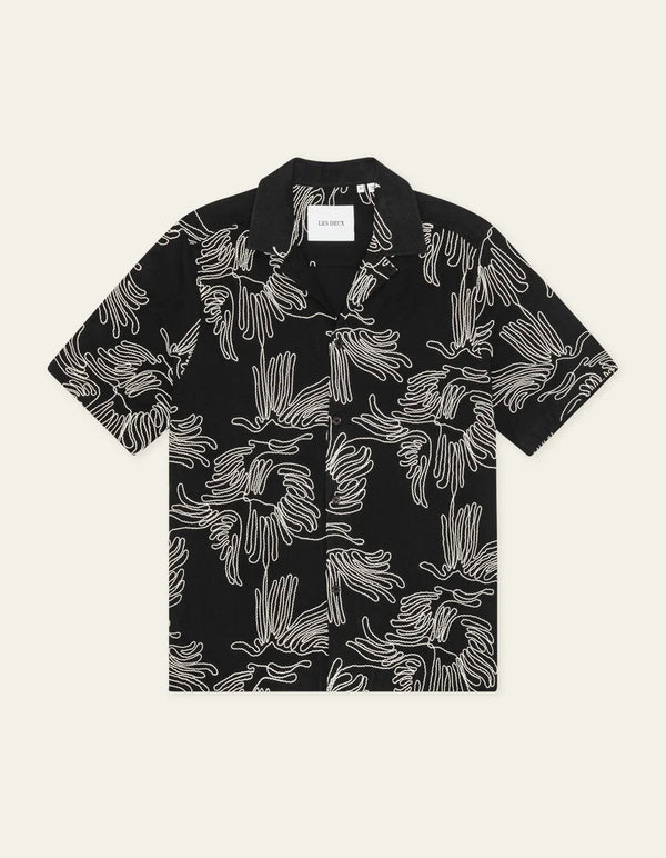 - {"id":8017874288702,"title":"Les Deux Black Liam Embroidered Flower SS Boxy Shirt","handle":"les-deux-black-liam-aoe-flower-ss-button-down-shirt","description":"\u003cp\u003e\u003cmeta charset=\"utf-8\"\u003e\u003cmeta charset=\"utf-8\"\u003e\u003cspan\u003eLes Deux black Liam all over embroidered short sleeve button down shirt.\u003cbr\u003e\u003c\/span\u003e\u003cspan style=\"font-family: -apple-system, BlinkMacSystemFont, 'San Francisco', 'Segoe UI', Roboto, 'Helvetica Neue', sans-serif; font-size: 0.875rem;\"\u003eBox-fit short-sleeve shirt in a crisp cotton blend, detailed with contrast flower embroideries across the surface. Designed with a relaxed camp collar and mother-of-pearl–look buttons that match the tonal palette.\u003c\/span\u003e\u003c\/p\u003e\n\u003cp\u003e90% Cotton, 10% Polyester\u003cbr\u003e\u003cspan style=\"font-family: -apple-system, BlinkMacSystemFont, 'San Francisco', 'Segoe UI', Roboto, 'Helvetica Neue', sans-serif; font-size: 0.875rem;\"\u003eAll-over contrast embroidery\u003cbr\u003e\u003c\/span\u003e\u003cspan style=\"font-family: -apple-system, BlinkMacSystemFont, 'San Francisco', 'Segoe UI', Roboto, 'Helvetica Neue', sans-serif; font-size: 0.875rem;\"\u003eCamp collar\u003cbr\u003e\u003c\/span\u003e\u003cspan style=\"font-family: -apple-system, BlinkMacSystemFont, 'San Francisco', 'Segoe UI', Roboto, 'Helvetica Neue', sans-serif; font-size: 0.875rem;\"\u003eMOP-look buttons\u003cbr\u003e\u003c\/span\u003e\u003cspan style=\"font-family: -apple-system, BlinkMacSystemFont, 'San Francisco', 'Segoe UI', Roboto, 'Helvetica Neue', sans-serif; font-size: 0.875rem;\"\u003eBox fit\u003c\/span\u003e\u003cspan\u003e\u003c\/span\u003e\u003c\/p\u003e\n\u003cp\u003e\u003cspan\u003eCare\u003cbr\u003eMachine wash cold, hang dry\u003cbr\u003e\u003c\/span\u003e\u003c\/p\u003e\n\u003cp\u003e\u003cspan\u003e\u003cmeta charset=\"utf-8\"\u003eThe model is 185 cm and wears a size M\u003cbr\u003eSize l Chest \u003c\/span\u003e\u003c\/p\u003e\n\u003ctable style=\"width: 100.087%;\" height=\"108\" class=\"text-[12px]\"\u003e\n\u003ctbody\u003e\n\u003ctr class=\"h-8 border-b vaul-scrollable\"\u003e\n\u003ctd style=\"width: 22.5399%;\" class=\"text-center\"\u003eS\u003c\/td\u003e\n\u003ctd style=\"width: 74.6005%;\" class=\"text-center\"\u003e36.6-38.2\"\u003c\/td\u003e\n\u003c\/tr\u003e\n\u003ctr class=\"h-8 border-b vaul-scrollable\"\u003e\n\u003ctd style=\"width: 22.5399%;\" class=\"text-center\"\u003eM\u003c\/td\u003e\n\u003ctd style=\"width: 74.6005%;\" class=\"text-center\"\u003e38.2-39.7\"\u003c\/td\u003e\n\u003c\/tr\u003e\n\u003ctr class=\"h-8 border-b vaul-scrollable\"\u003e\n\u003ctd style=\"width: 22.5399%;\" class=\"text-center\"\u003eL\u003c\/td\u003e\n\u003ctd style=\"width: 74.6005%;\" class=\"text-center\"\u003e37.7-41.3\"\u003c\/td\u003e\n\u003c\/tr\u003e\n\u003ctr class=\"h-8 border-b vaul-scrollable\"\u003e\n\u003ctd style=\"width: 22.5399%;\" class=\"text-center\"\u003eXL\u003c\/td\u003e\n\u003ctd style=\"width: 74.6005%;\" class=\"text-center\"\u003e41.3-42.9\"\u003c\/td\u003e\n\u003c\/tr\u003e\n\u003c\/tbody\u003e\n\u003c\/table\u003e\n\u003cp\u003e\u003cspan\u003e\u003cbr\u003eBRAND\u003cbr\u003eFounded in 2011. Based in Copenhagen, Denmark. \u003c\/span\u003e\u003c\/p\u003e","published_at":"2026-02-09T11:43:09-08:00","created_at":"2026-02-09T11:39:55-08:00","vendor":"Les Deux","type":"Long Sleeve Shirts","tags":[],"price":24900,"price_min":24900,"price_max":24900,"available":true,"price_varies":false,"compare_at_price":null,"compare_at_price_min":0,"compare_at_price_max":0,"compare_at_price_varies":false,"variants":[{"id":42481714397246,"title":"Small \/ Black","option1":"Small","option2":"Black","option3":null,"sku":"1001421_Black_S","requires_shipping":true,"taxable":true,"featured_image":null,"available":false,"name":"Les Deux Black Liam Embroidered Flower SS Boxy Shirt - Small \/ Black","public_title":"Small \/ Black","options":["Small","Black"],"price":24900,"weight":454,"compare_at_price":null,"inventory_quantity":0,"inventory_management":"shopify","inventory_policy":"deny","barcode":"5715747097446","requires_selling_plan":false,"selling_plan_allocations":[]},{"id":42481714430014,"title":"Medium \/ Black","option1":"Medium","option2":"Black","option3":null,"sku":"1001421_Black_M","requires_shipping":true,"taxable":true,"featured_image":null,"available":true,"name":"Les Deux Black Liam Embroidered Flower SS Boxy Shirt - Medium \/ Black","public_title":"Medium \/ Black","options":["Medium","Black"],"price":24900,"weight":454,"compare_at_price":null,"inventory_quantity":6,"inventory_management":"shopify","inventory_policy":"deny","barcode":"5715747097453","requires_selling_plan":false,"selling_plan_allocations":[]},{"id":42481714462782,"title":"Large \/ Black","option1":"Large","option2":"Black","option3":null,"sku":"1001421_Black_L","requires_shipping":true,"taxable":true,"featured_image":null,"available":true,"name":"Les Deux Black Liam Embroidered Flower SS Boxy Shirt - Large \/ Black","public_title":"Large \/ Black","options":["Large","Black"],"price":24900,"weight":454,"compare_at_price":null,"inventory_quantity":6,"inventory_management":"shopify","inventory_policy":"deny","barcode":"5715747097460","requires_selling_plan":false,"selling_plan_allocations":[]},{"id":42481714495550,"title":"X-Large \/ Black","option1":"X-Large","option2":"Black","option3":null,"sku":"1001421_Black_XL","requires_shipping":false,"taxable":true,"featured_image":null,"available":true,"name":"Les Deux Black Liam Embroidered Flower SS Boxy Shirt - X-Large \/ Black","public_title":"X-Large \/ Black","options":["X-Large","Black"],"price":24900,"weight":454,"compare_at_price":null,"inventory_quantity":3,"inventory_management":"shopify","inventory_policy":"deny","barcode":"5715747097477","requires_selling_plan":false,"selling_plan_allocations":[]}],"images":["\/\/wittmore.com\/cdn\/shop\/files\/1001421-100-black-0177.webp?v=1770666179","\/\/wittmore.com\/cdn\/shop\/files\/10014