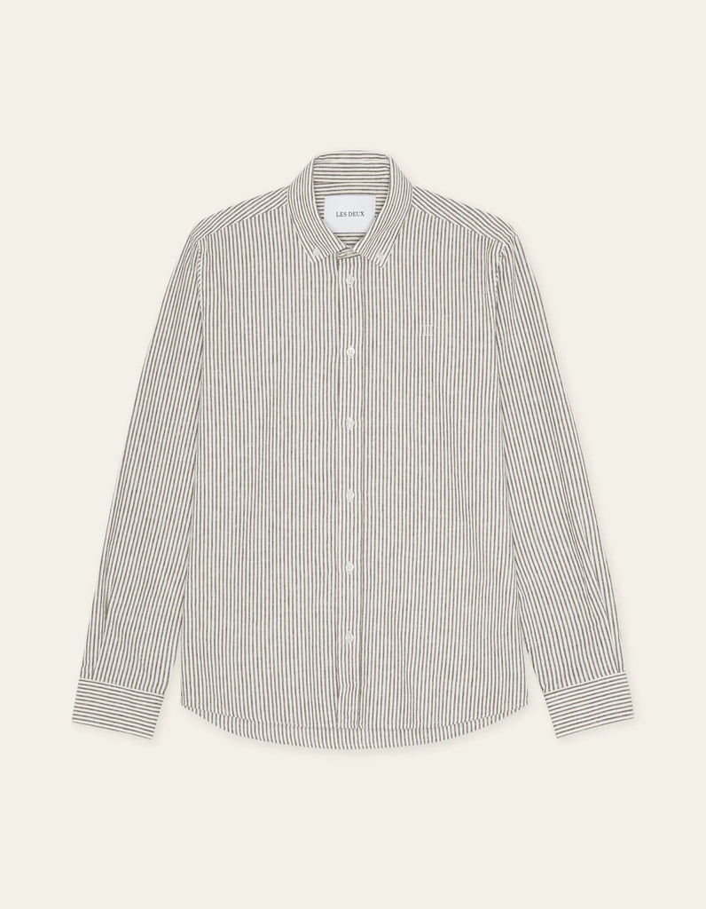 Les Deux Teak Brown Striped Konrad Cotton Linen Shirt