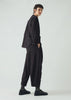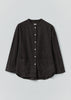 Toast Graphite Black Ecru Cotton Cashmere Check Grandad Shirt, made from organic cotton blended with cashmere and woven with a grid check inspired by notebook graph paper. Shaped to a neat fit across the front, with a pleat at the back yoke. Featuring front waist in-seam pockets and secured with contrasting corozo buttons.