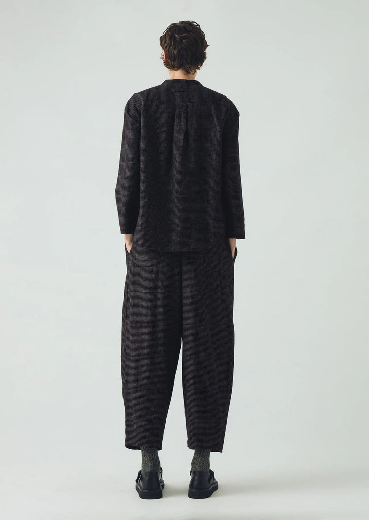 Toast Graphite Black Ecru Cotton Cashmere Check Grandad Shirt