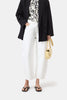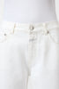 Closed ivory denim barrel leg Jazzie pant. Jazzie 5-pocket denim style is a  relaxed, modern barrel fit with a mid-rise and cropped length. Made in Italy from extra-sturdy and authentic rigid denim (14 oz.) in a warm white tone with a dry feel.