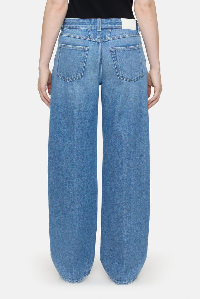 Closed mid blue wide leg Nikka denim jeans. Mid rise, wide fit with a long leg.