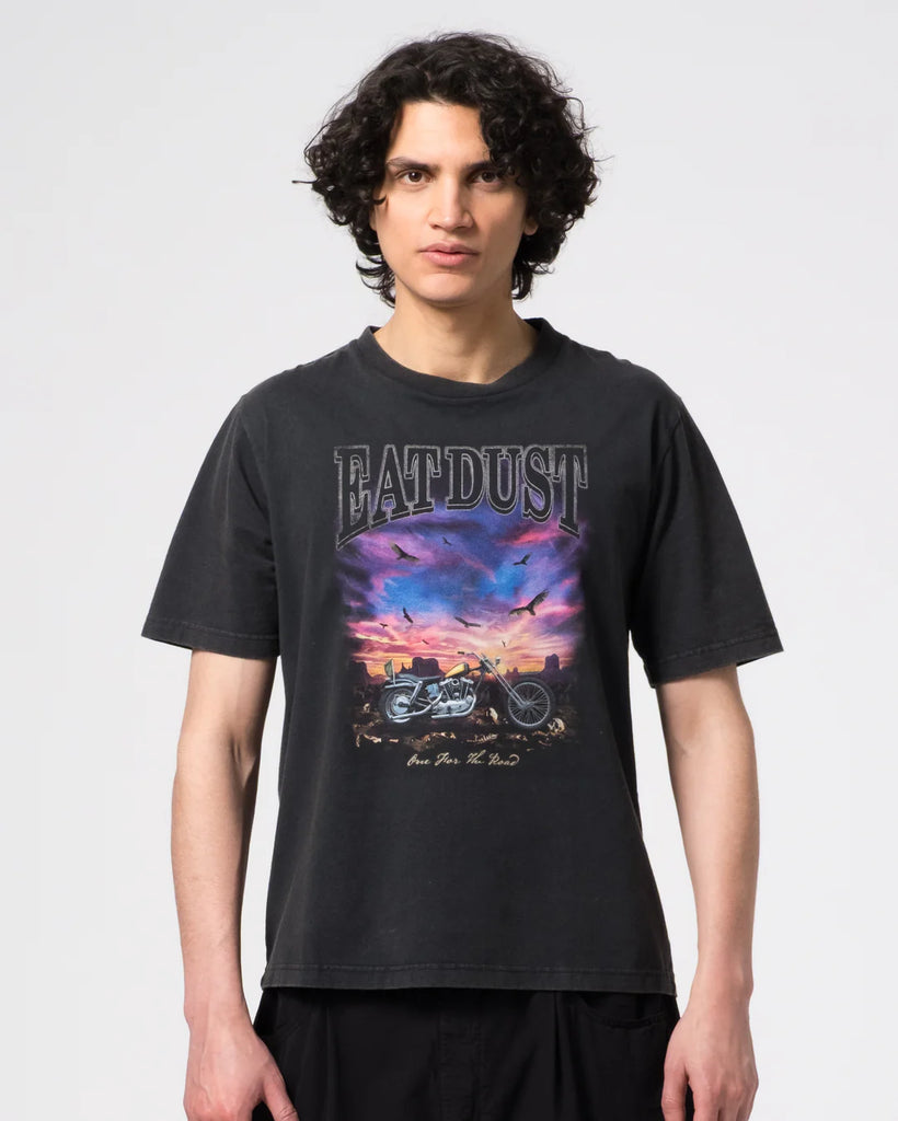Eat Dust black 100% cotton Digger graphic t shirt. Regular, comfortable fit, made from a premium open end med weight cotton jersey.